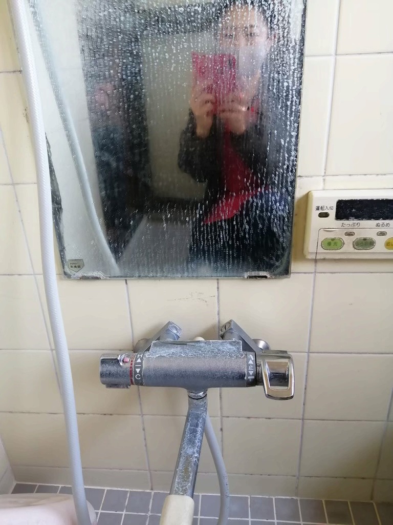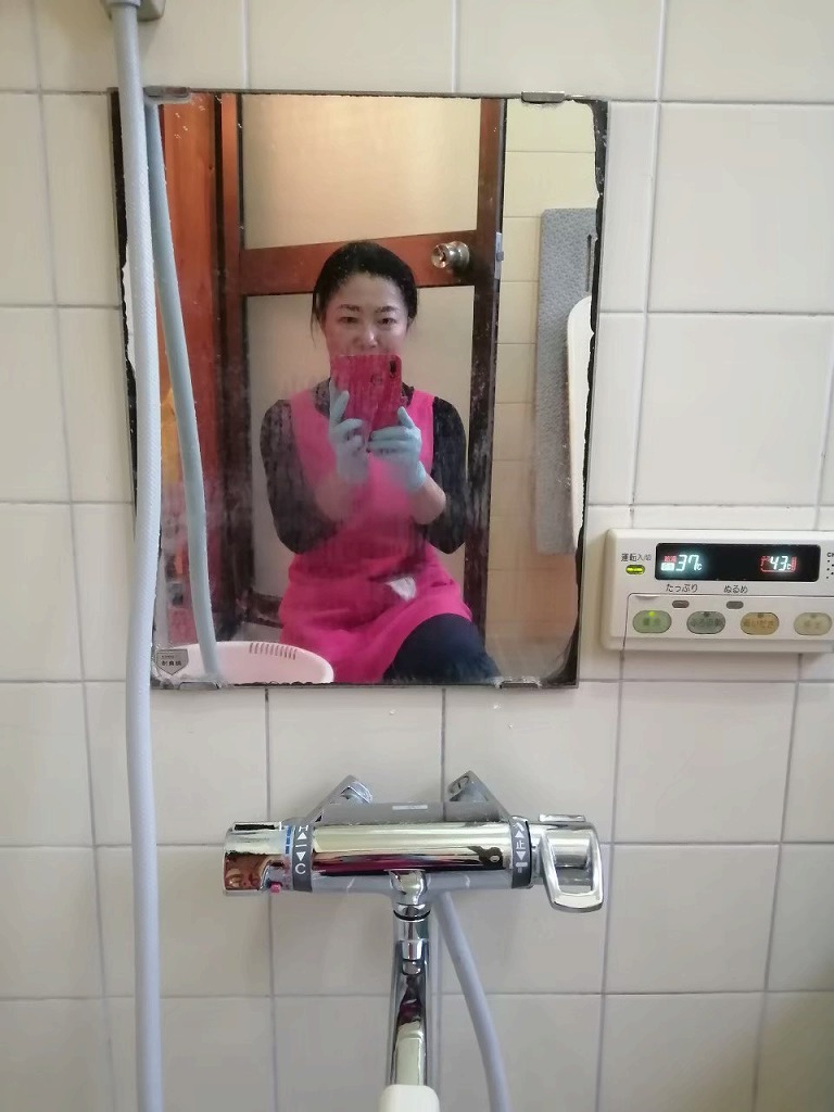 ⑤お風呂場のカガミと蛇口、ビフォーアフター/曇ガラスから私の顔がすっかり写るまでに!蛇口だってピカピ