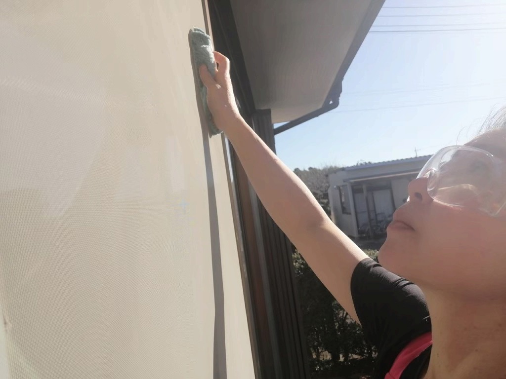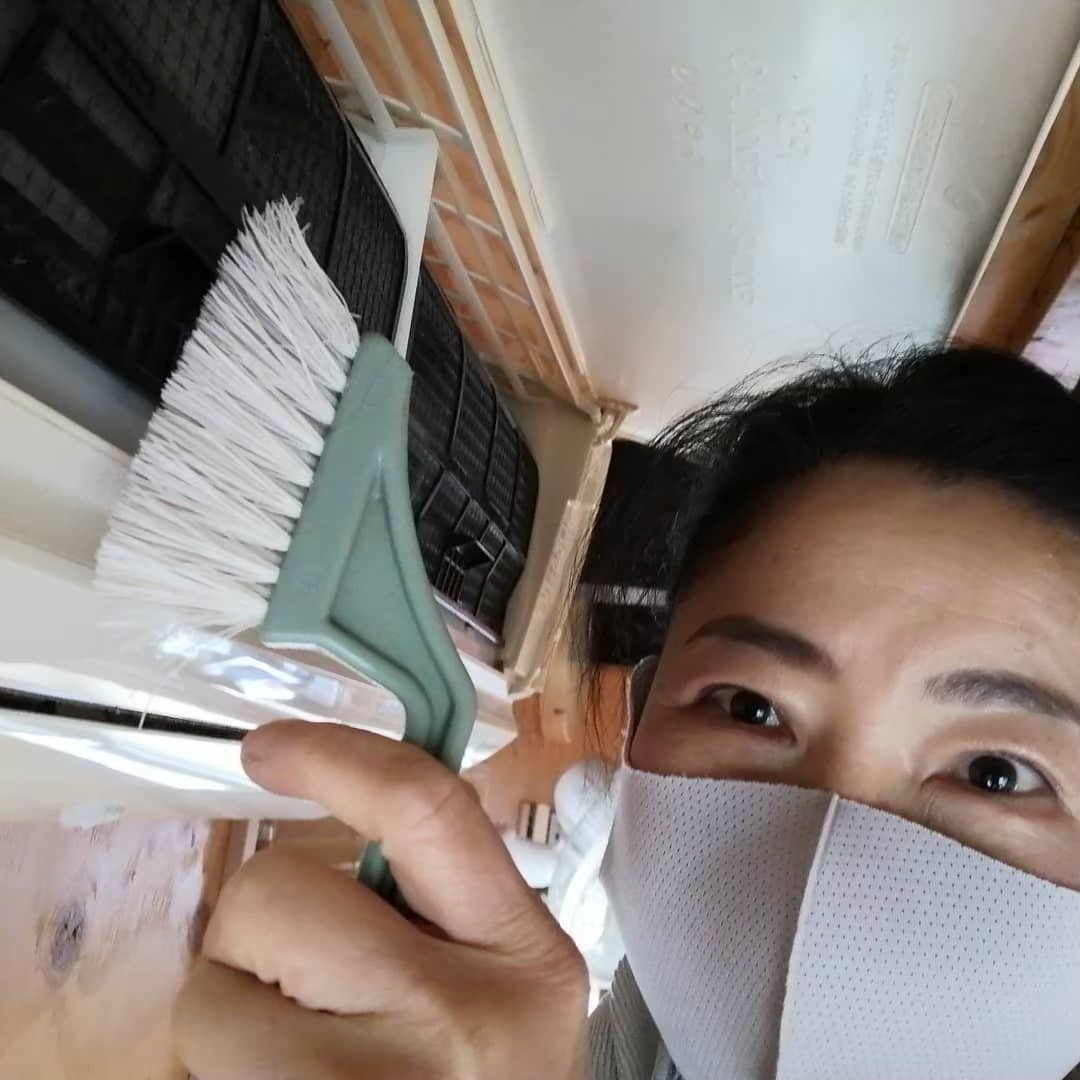④エアコンの掃除/フィルターを洗いブラシでホコリを取り、水拭きしてキレイに仕上げます。
